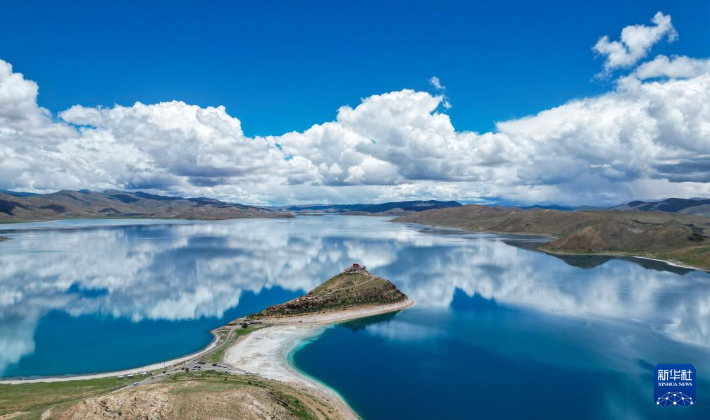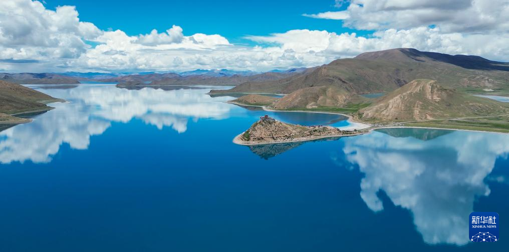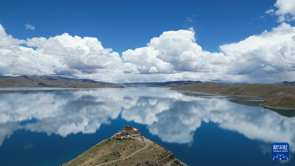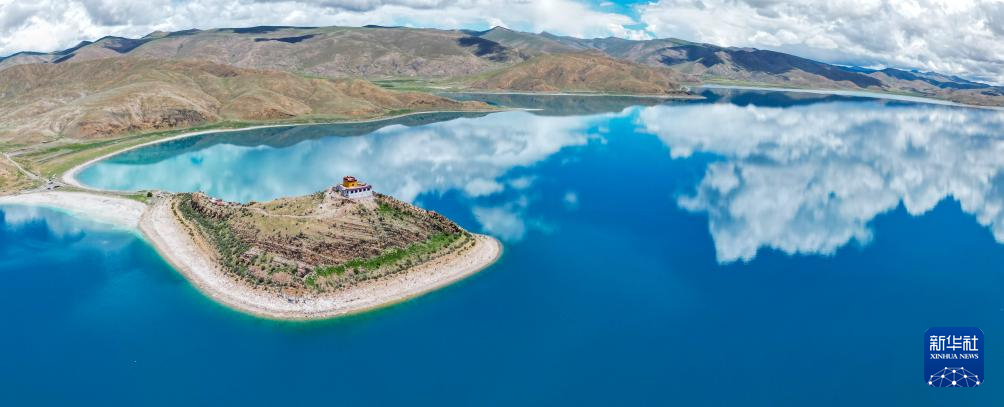 坐落于羊湖北岸一座半島上的日托寺(無(wú)人機(jī)照片,7月22日攝)新華社記者 聶毅 攝