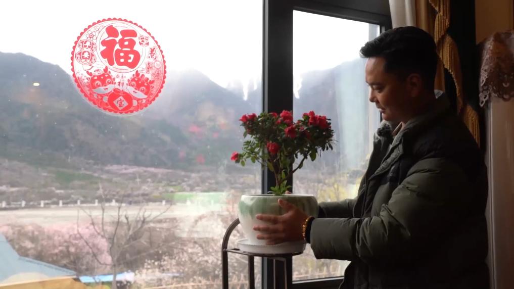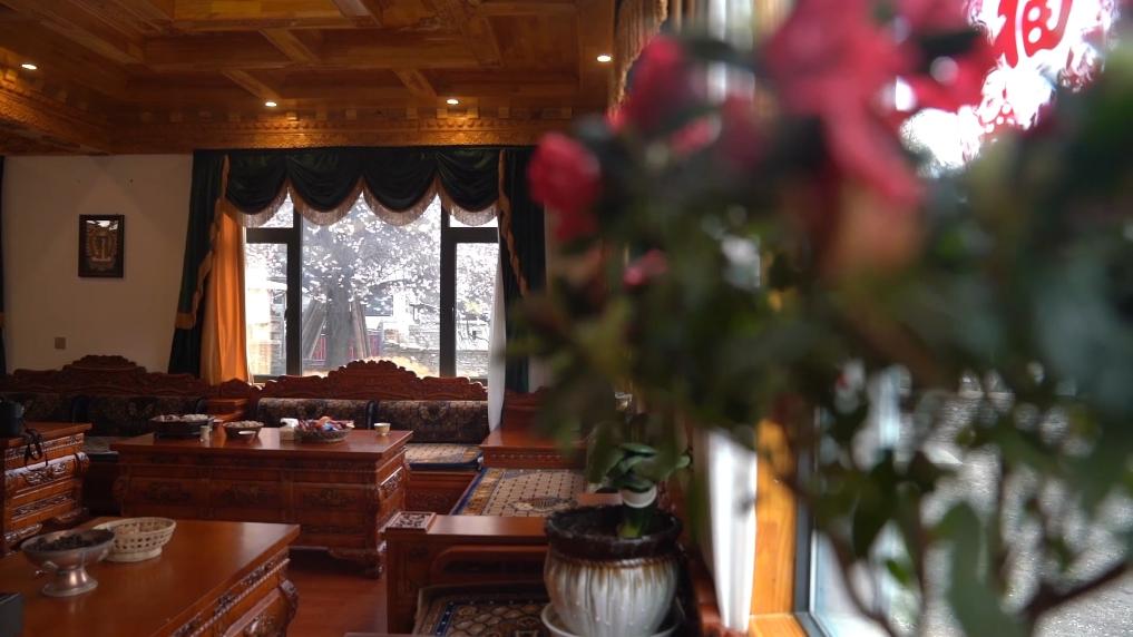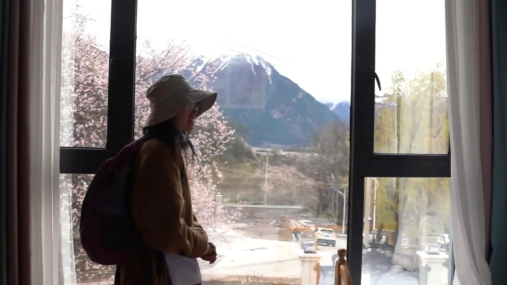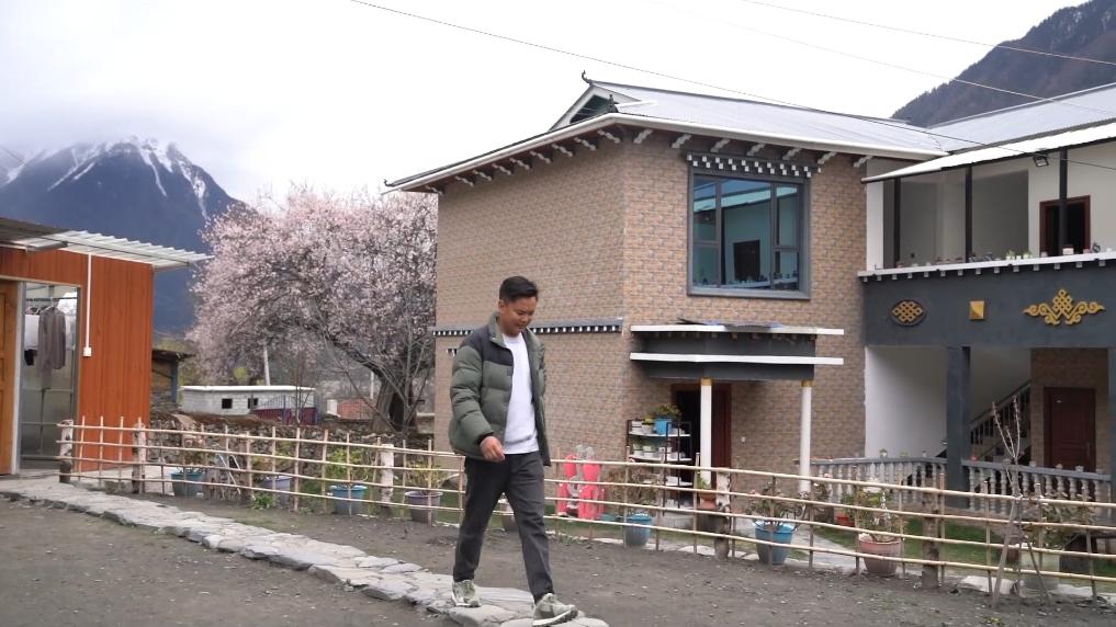 下午4點,林芝市波密縣傾多鎮(zhèn)古通村,遠來的游客入住到村民洛松頓珠開辦的民宿。寬敞的客廳里,藏式家具整齊大氣,窗外古老的桃花樹隨風散落著陣陣花雨。