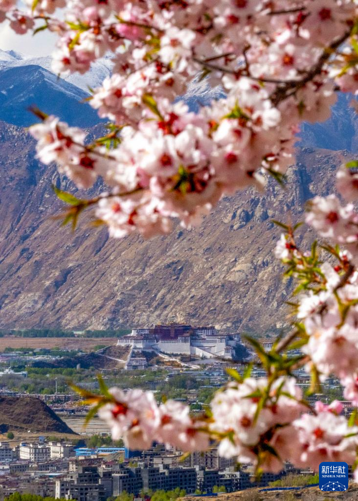 桃花映襯著布達拉宮(4月17日攝)。新華社記者 姜帆 攝