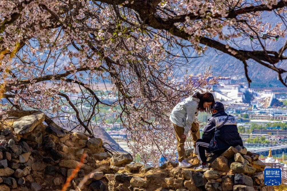 近日,西藏拉薩市城關(guān)區(qū)慈覺林社區(qū)的一片古桃樹進入盛花期,因其正對著布達拉宮,成為游人拍照打卡的“網(wǎng)紅”地。