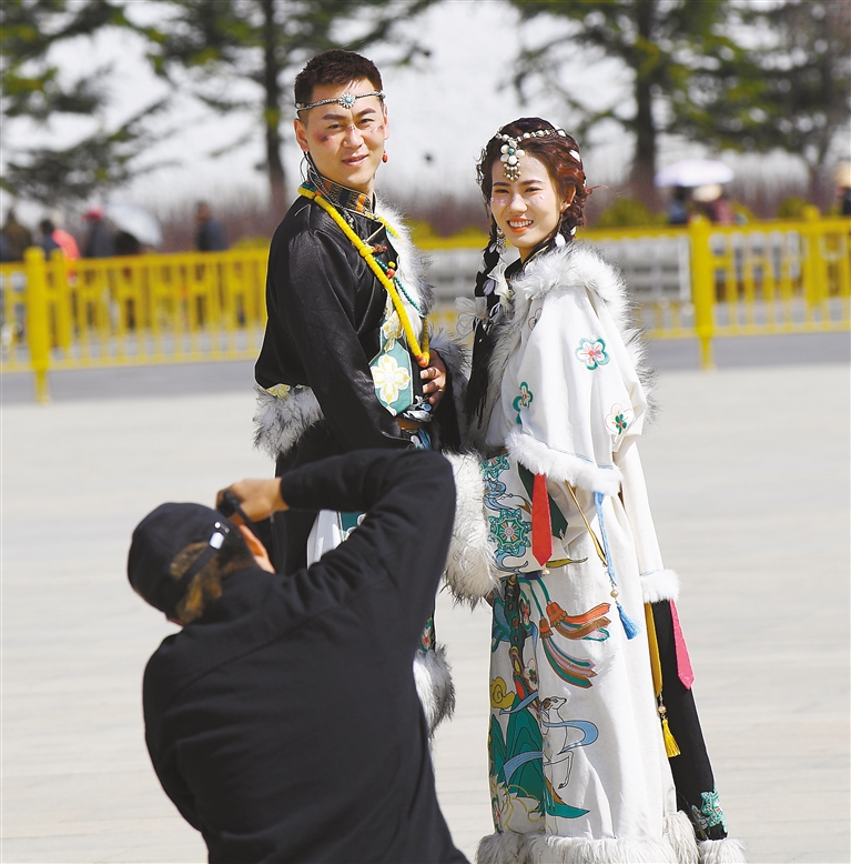 身著藏裝拍攝寫(xiě)真的游客。記者 洛?!z