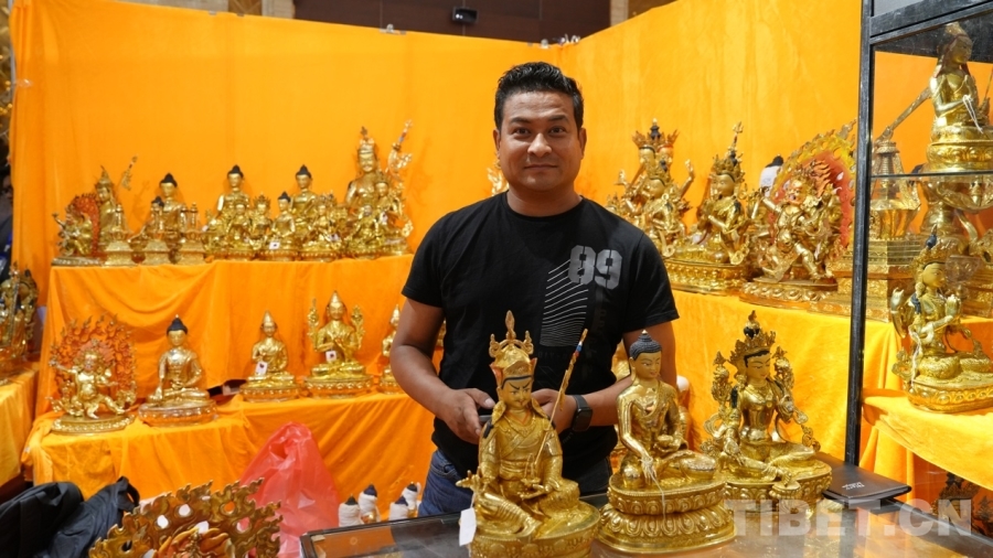 Bikram來自尼泊爾首都加德滿都,十年前來過拉薩,深深被這座城市所吸引,這次通過中外商品展銷會再次來到一直向往的拉薩,他非常開心?!拔覀兡岵礌柕氖止に嚻吩谌澜绯雒@次我們從尼泊爾帶來的有唐卡、佛像、毛毯等,都是全手工制作的,希望在此次展銷會能夠得到西藏消費(fèi)者的支持與喜愛?!?/p>