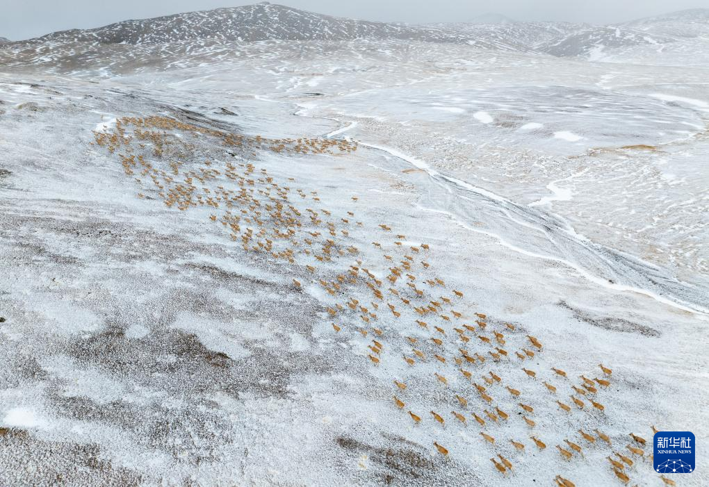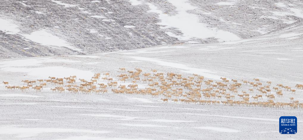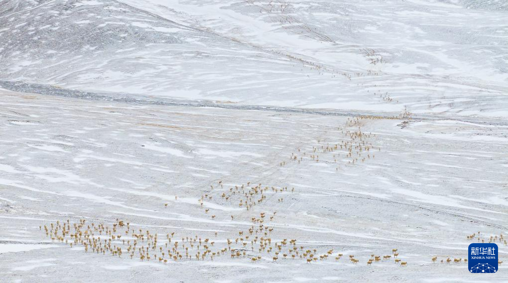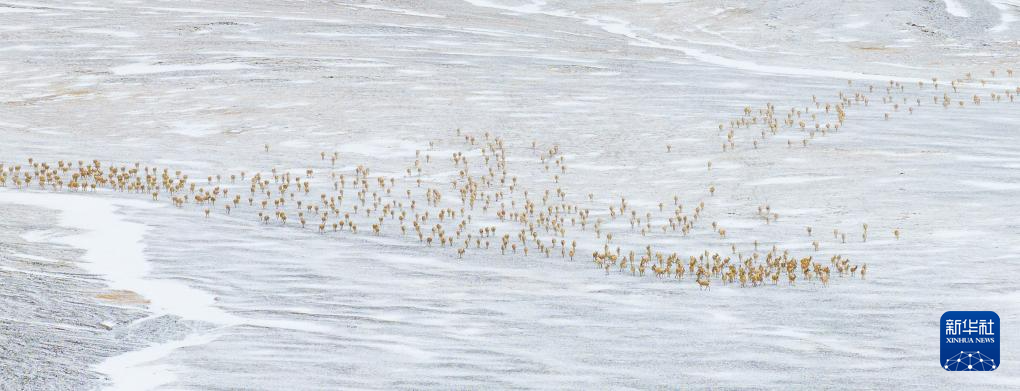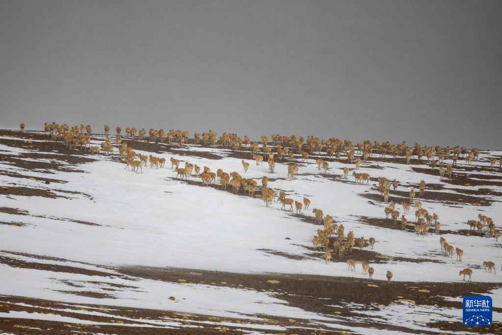 近日,在位于西藏自治區(qū)北部的羌塘國家級自然保護區(qū),大群懷孕的雌性藏羚羊開始集結成群,向習慣產羔地遷徙。