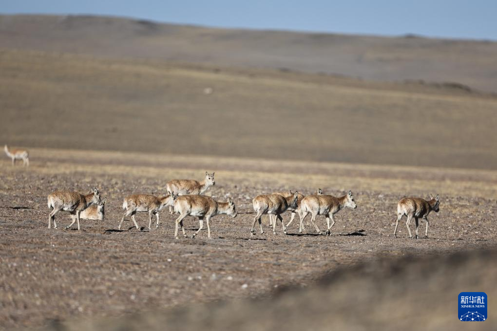 藏羚羊在翻越山頭(5月10日攝)。新華社記者 姜帆 攝