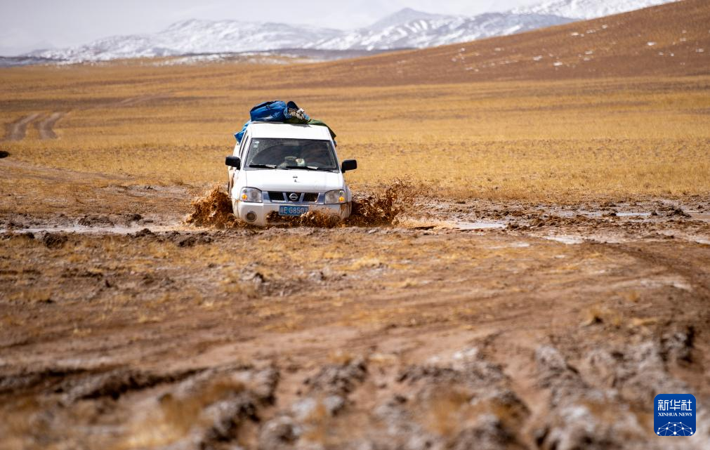 野生動(dòng)物專業(yè)管護(hù)隊(duì)員冒著風(fēng)雪趕到無(wú)人區(qū)深處的布查玉管護(hù)站(5月7日攝)。新華社記者 姜帆 攝 ??