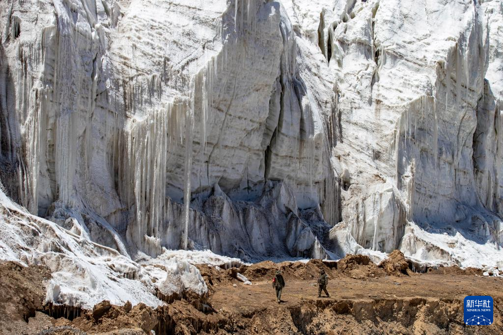 ??野生動(dòng)物專業(yè)管護(hù)隊(duì)員在無(wú)人區(qū)深處的藏色崗日冰川巡查(5月11日攝)。新華社記者 姜帆 攝