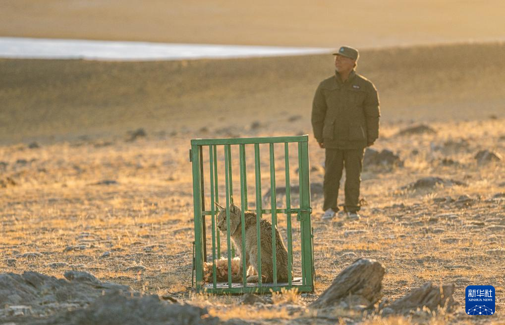??野生動(dòng)物專業(yè)管護(hù)隊(duì)員準(zhǔn)備將一頭猞猁放歸自然(5月12日攝)。新華社記者 丁增尼達(dá) 攝