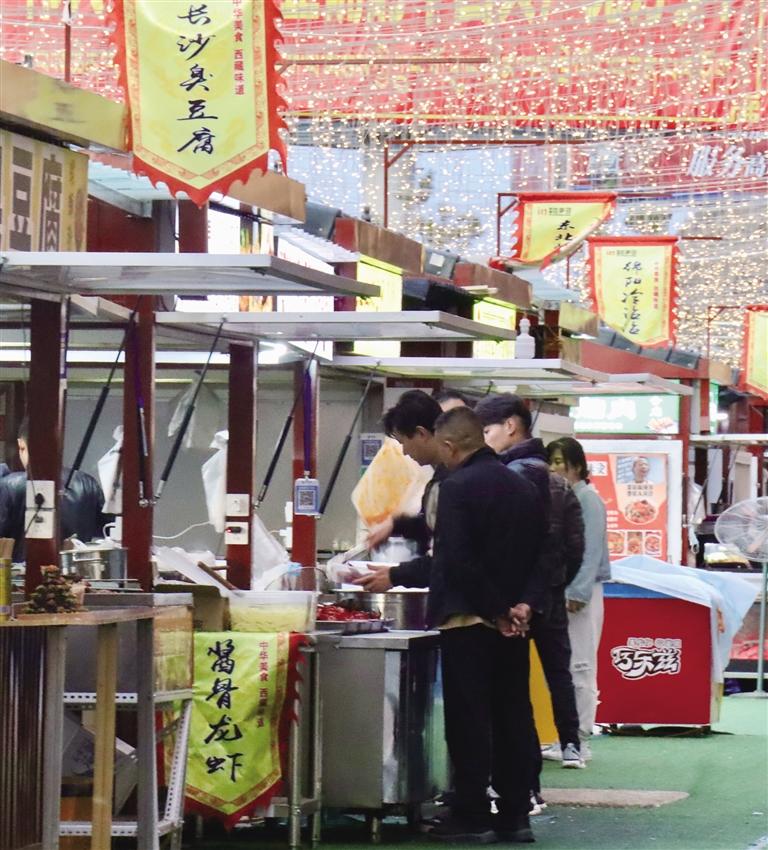夜幕降臨,拉薩的街頭巷尾燈火璀璨如星辰,納金路萬(wàn)達(dá)廣場(chǎng)的金街上,熱氣騰騰的煙火氣也在霓虹閃爍中氤氳出了熟悉的味道,美食為夜生活增添了不少驚喜。