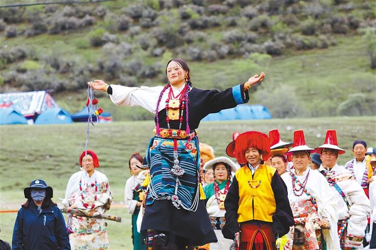 開幕式結(jié)束后,“春踏林周·悅賞杜鵑”——2024林周縣“春賞杜鵑”生態(tài)藝術(shù)共享季系列活動開始。為了給廣大游客提供專業(yè)的旅拍服務(wù),主會場的杜鵑花賞花點被巧妙地轉(zhuǎn)化為一個充滿自然韻味的“攝影棚”,并推出“非遺”服飾體驗,讓游客更深入地感受和體驗當?shù)貍鹘y(tǒng)文化的魅力。同時,圍繞林周縣北部的生態(tài)環(huán)境、藝術(shù)人文和“非遺”文化等設(shè)計開展了徒步旅游活動,活動融合“農(nóng)文旅體”等內(nèi)容,從專業(yè)性的內(nèi)容植入、技能型的活動設(shè)計等方面來增強徒步旅游的品質(zhì)。旁多鄉(xiāng)的達龍藏戲、唐古鄉(xiāng)的熱振曲卓、阿朗鄉(xiāng)的“果諧”還給觀眾帶來了精彩的“非遺”表演。