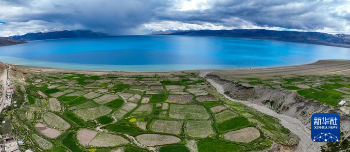 這是一家賓館民宿門前的當惹雍錯夏季景色。新華社記者 姜帆 攝