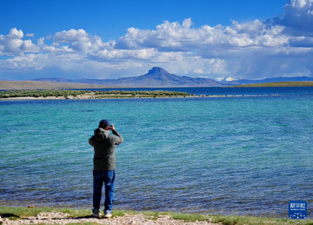 游客在錯(cuò)鄂湖畔拍照(8月25日攝)。新華社記者 張汝鋒 攝 ??