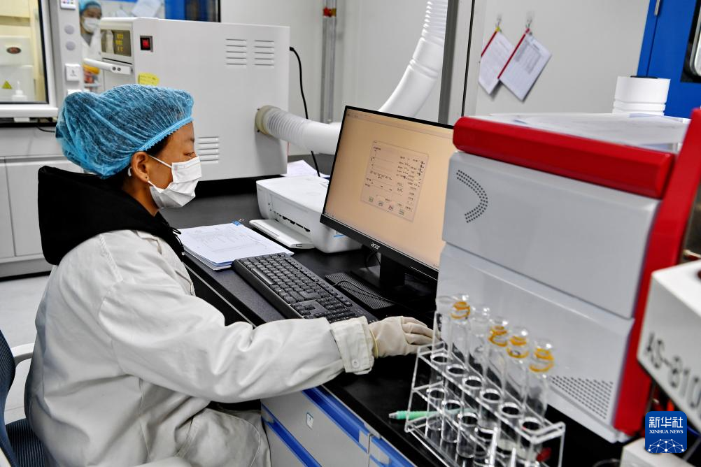 嘎確生態(tài)畜牧業(yè)發(fā)展有限責(zé)任公司檢驗人員在對牛奶中的污染物進行檢測(8月24日攝)。新華社記者 張汝鋒 攝 ??