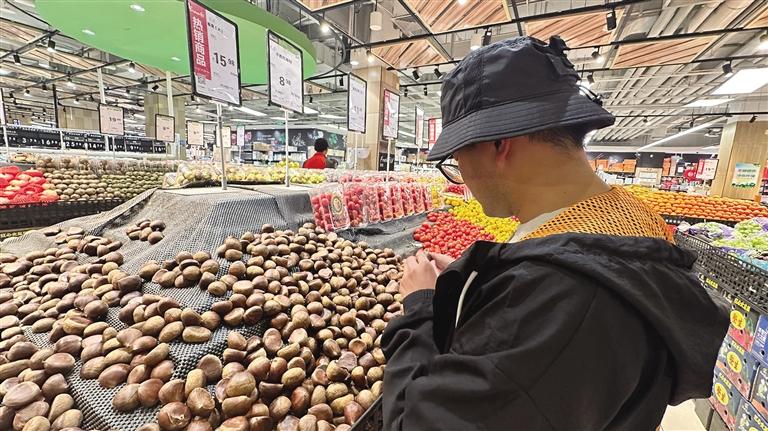 市民正在選購新鮮板栗。