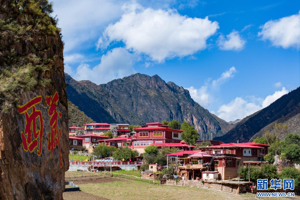 10月21日拍攝的“西藏解放第一村”昌都市江達縣崗托村藏式樓房(無人機照片)。新華網 旦增努布 攝