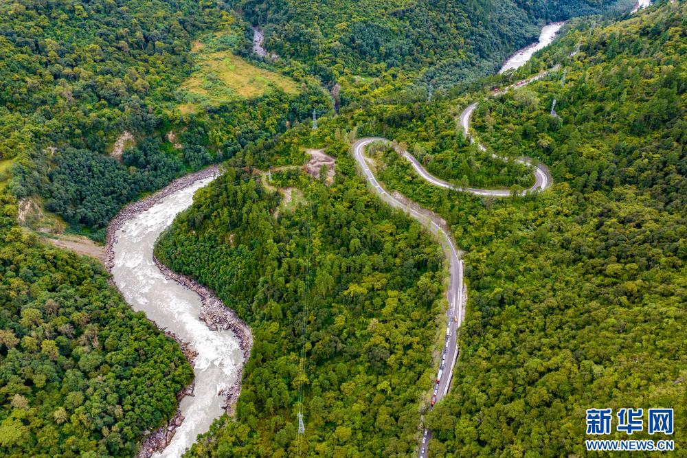 10月11日,在西藏林芝市波密縣境內拍攝的川藏公路(無人機照片)。新華網 旦增努布 攝