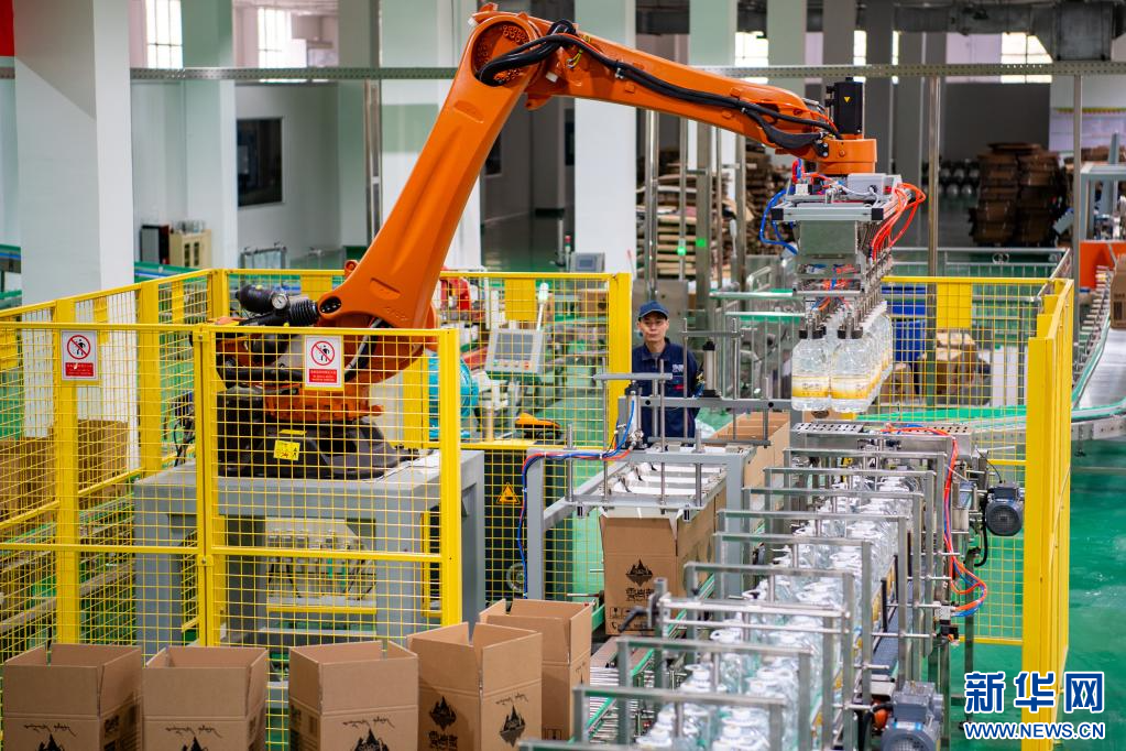 10月21日拍攝的江達(dá)縣凈界天然飲用水有限責(zé)任公司的產(chǎn)品生產(chǎn)流水線(xiàn)。該公司依托當(dāng)?shù)睾0?500米的天然涌泉,打造天然飲用水。新華網(wǎng) 旦增努布 攝