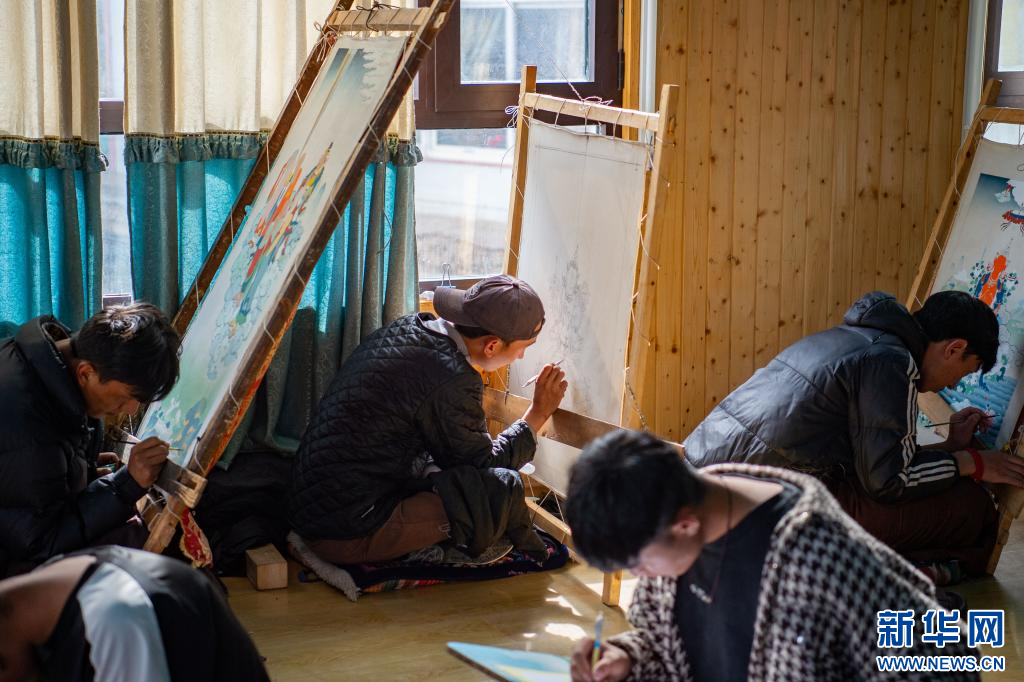 10月17日拍攝的卡若區(qū)嘎瑪鄉(xiāng)的一家唐卡畫(huà)院。該鄉(xiāng)2020年被國(guó)家文化和旅游部命名為“中國(guó)民間文化藝術(shù)之鄉(xiāng)”。在嘎瑪鄉(xiāng)不少當(dāng)?shù)厝罕娛来鷱氖绿瓶ɡL畫(huà)、金屬鍛造、石刻等民族手工藝品制作,幾乎家家有工匠、戶(hù)戶(hù)有傳人。新華網(wǎng) 旦增努布 攝