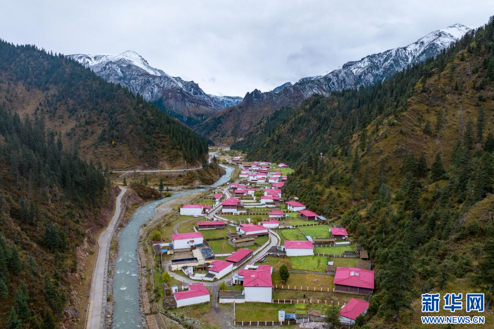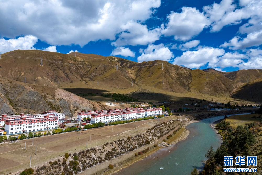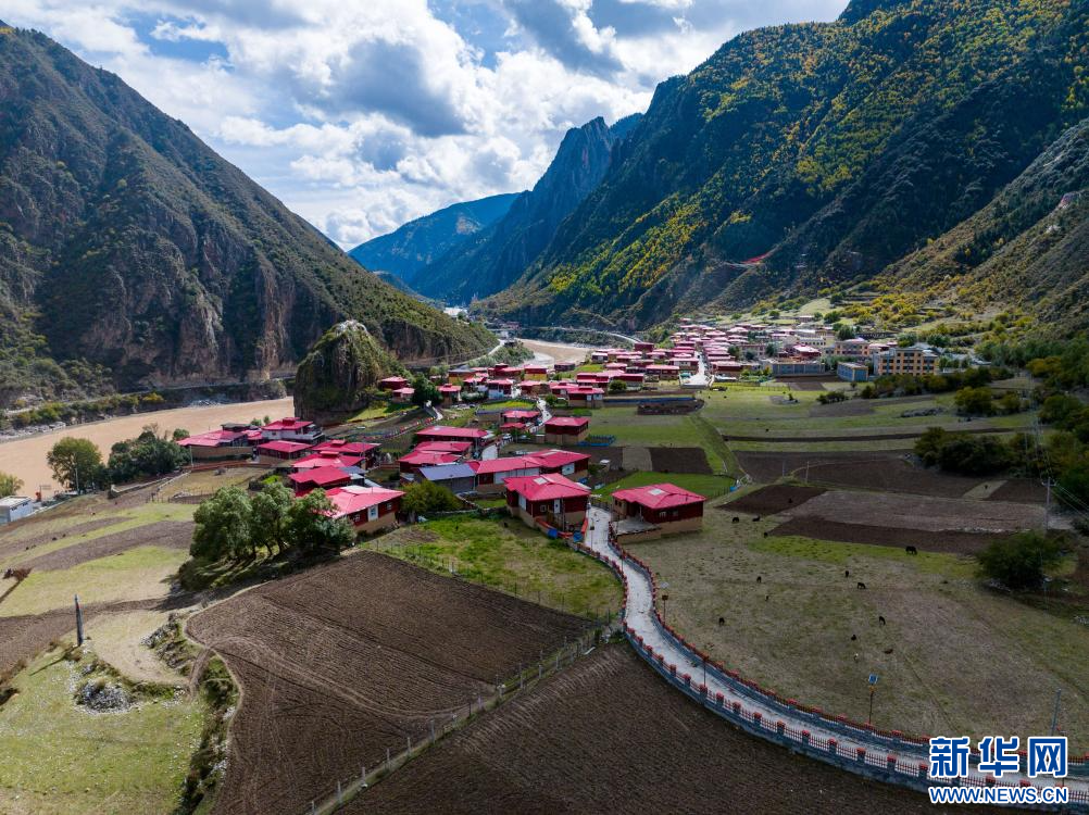 10月21日拍攝的“西藏解放第一村”昌都市江達縣崗?fù)写宕迕玻o人機照片)。新華網(wǎng) 旦增努布 攝