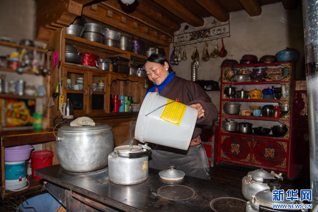 10月19日,昌都市卡若區(qū)妥壩鄉(xiāng)熱霍村村民白瑪拉姆在家里準(zhǔn)備燒水。新華網(wǎng) 旦增努布 攝