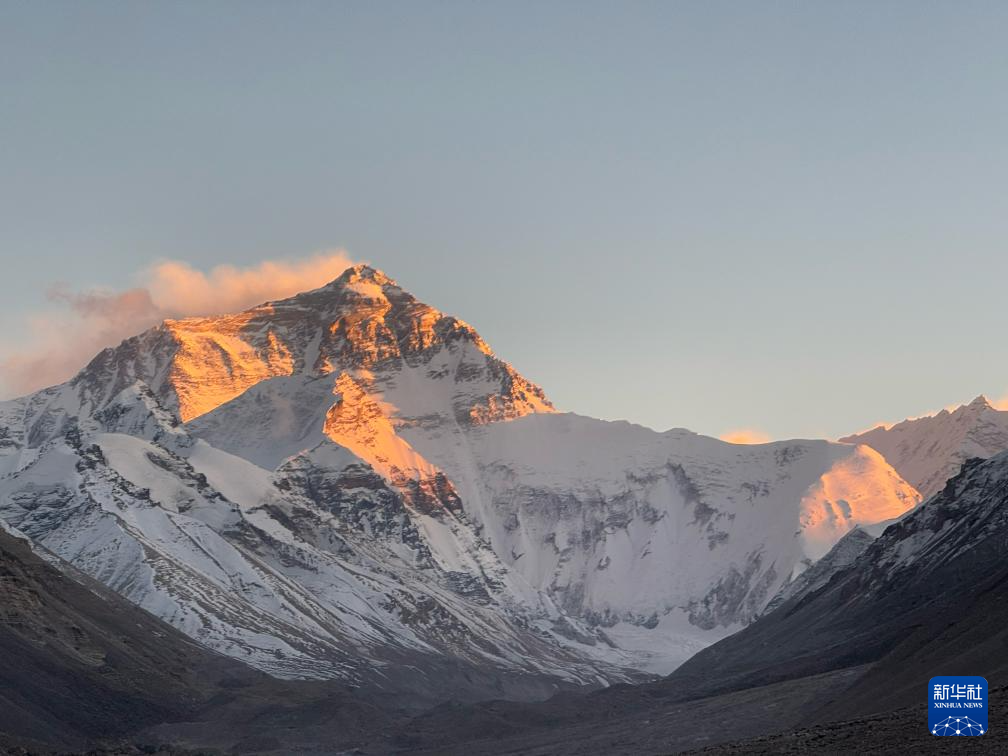 這是11月20日拍攝的珠穆朗瑪峰日照金山景觀。新華社記者 邱星翔 攝