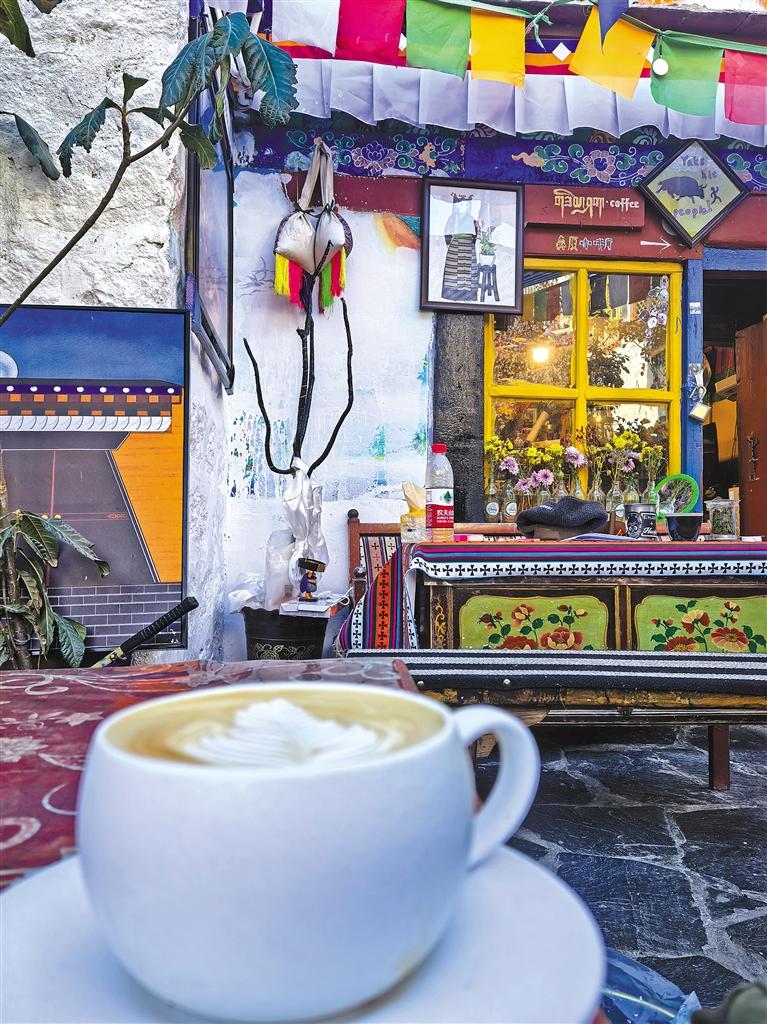 離開(kāi)曲蘇大院,記者來(lái)到了另一個(gè)取景地—貢桑孜大院。與曲蘇大院相比,貢桑孜大院則顯得更加現(xiàn)代和時(shí)尚。走進(jìn)大院,就能聞到醇厚的咖啡香氣,院子的角落里有一家咖啡店,這家咖啡店是旦增格桑和朋友共同經(jīng)營(yíng)的。