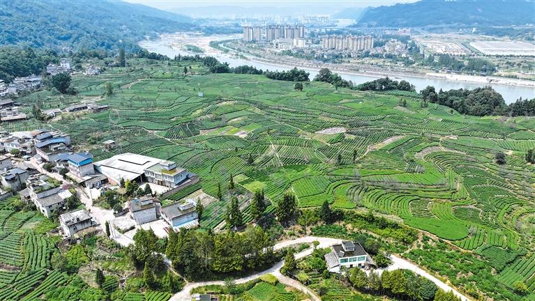 圖為鳥(niǎo)瞰雅安市雨城區(qū)草壩鎮(zhèn)的茶園。記者 張思雨 攝