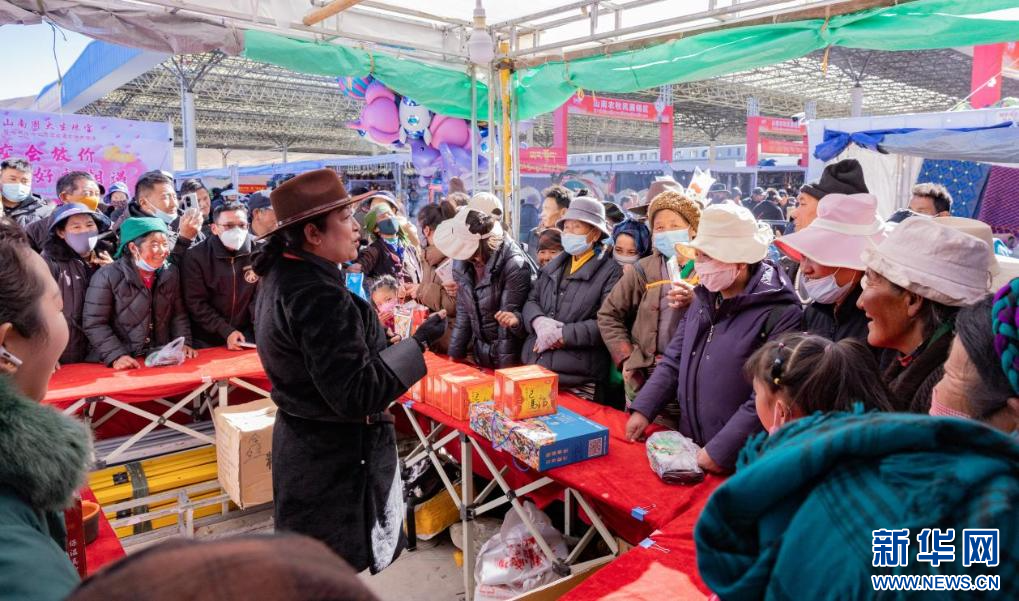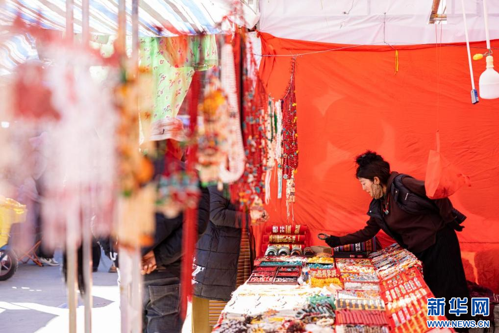 在現(xiàn)場(chǎng),人來(lái)人往,商品琳瑯滿(mǎn)目。扎念琴聲、推車(chē)聲、嬉笑聲此起彼伏,一派熱鬧繁忙的景象。