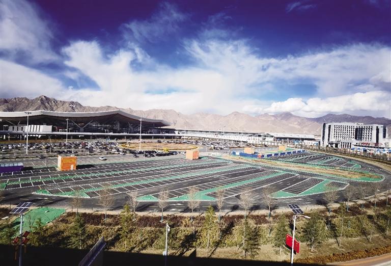 拉薩貢嘎國際機(jī)場T3航站樓停車場。圖由民航西藏自治區(qū)管理局提供