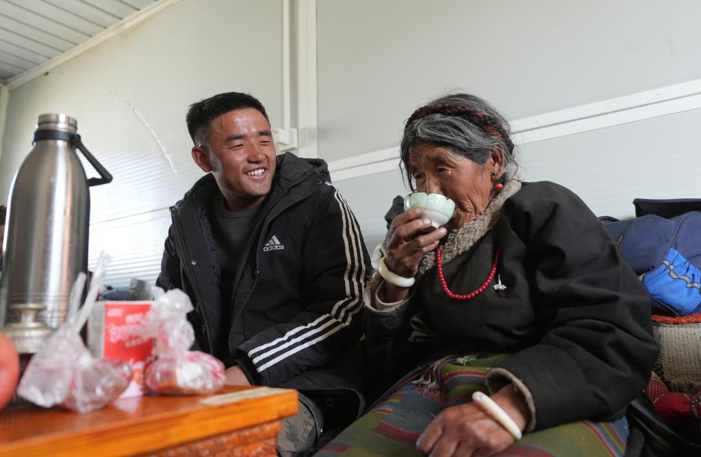 達(dá)娃次仁在救災(zāi)帳篷見(jiàn)到了母親次仁塔覺(jué)。這位66歲的藏族老阿媽,身體硬朗,精神矍鑠,是全家人的“精神依靠”。