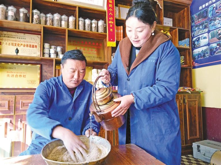 在村子里,受他們的影響,村民們也躍躍欲試,紛紛成立了合作社。曲旺作為婦女代表,站在工坊中間,目光堅定而充滿希望:“今后啊,我更有信心帶動更多的姐妹走上商業(yè)發(fā)展道路,讓咱這藏香事業(yè)越做越大,在傳承非遺的同時,繼續(xù)給鄉(xiāng)親們鋪就增收致富路?!?/p>