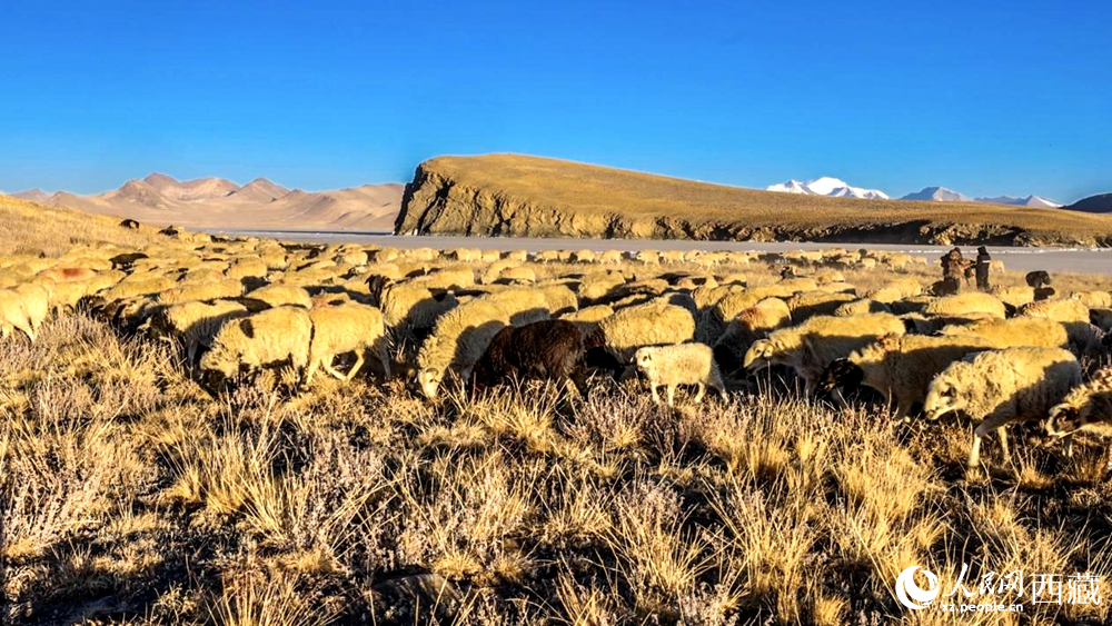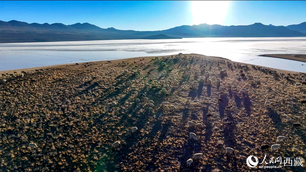普莫雍錯“冰上趕羊”,是當?shù)啬撩袷来鄠鞯墓爬现腔?。每年冬季,由于推瓦村海拔高、夏季短,草場無法為羊群提供充足的過冬飼料。因此,每年高原最冷的時候,推瓦村牧民會把羊群趕到普莫雍錯水草豐茂的湖心島,依靠島上的草料度過最寒冷的冬期。