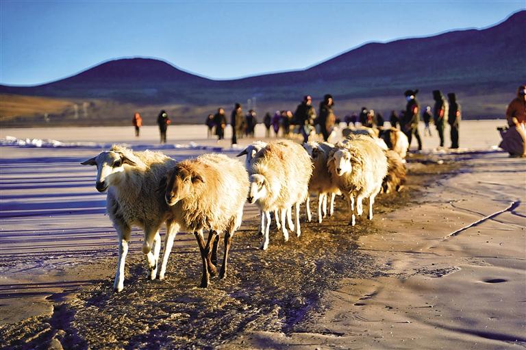 這場趕羊活動,是一場人與自然的溫柔邂逅。牧羊人與羊群相互陪伴,冰湖與雪山相互映襯,星光與日出交替登場,所有元素在這一刻完美交融,共同繪就了推瓦村冬季里最令人難忘的風景。冰湖上的每一步,都飽含著對自然的敬畏與依賴;每一道光,都是對生命的深情禮贊。 圖/記者 貢曲羅杰 桑旦歐珠 阿旺尼瑪