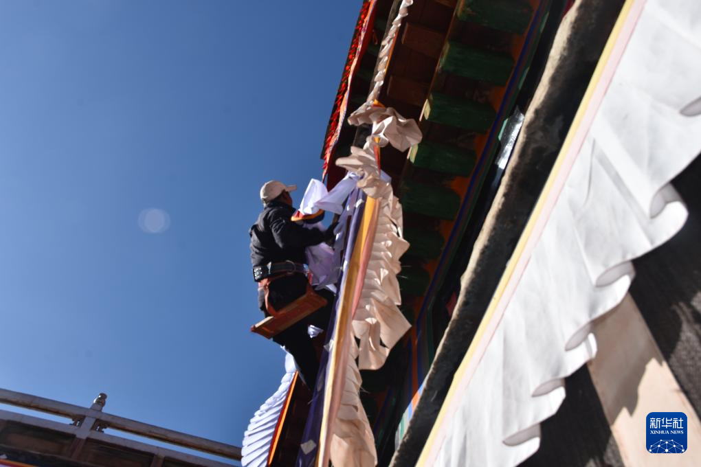嶄新的“香布”在微風(fēng)中輕輕飄動,與布達(dá)拉宮建筑主體的紅白兩色相映生輝,為這座古老的文化遺產(chǎn)增添了別樣的靈動之美。