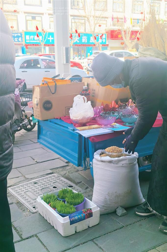 前來采購的格桑卓嘎阿姨,手里提著大包小包,臉上滿是笑意。她買了青稞酒、酥油、風(fēng)干肉還有青稞苗。新年時(shí),用青稞酒祈福,酥油茶招待客人,風(fēng)干牛肉和新鮮軟糯的拉拉、用酥油雕出精美圖案的“推”一起擺盤,供客人隨時(shí)食用。“今年‘古突’和‘朗嘎’是同一天,打算全家圍坐一起吃。家里布置都按習(xí)俗,擺好切瑪、德卡、青稞苗,再給門窗換上新的‘香布’。孩子們買了不少藏文對聯(lián),說是要貼門上,祈福來年順?biāo)?。帶孩子來傳統(tǒng)市集,就是要讓他們記住咱們藏歷新年的習(xí)俗。這些年,市集多了些漂亮的藏式手工藝品,不過最有年味兒的,還得是這糌粑和青稞粒的香。”