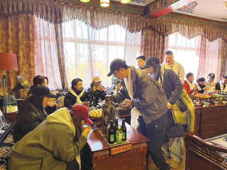 來自東北遼寧的于先生是第一次過藏歷新年,一切都讓他感到新奇不已。他一邊不停地拍照,分享給遠方的家人,一邊興奮地介紹說:“我不僅品嘗到了美味的藏式佳肴,更深入了解了藏歷新年習俗,這份跨越文化的溫暖與情誼,將成為我記憶中最珍貴的新年禮物,希望明年還有機會過藏歷新年?!庇谙壬脑捳Z,道出了許多游客的心聲。在這個特別的新年里,他們收獲的不僅僅是美食與美景,更是一份深厚的文化體驗和溫暖的情誼。