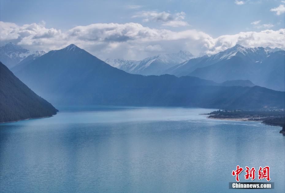 3月30日,航拍巴松措春日風(fēng)景。巴松措又名錯高湖,位于西藏自治區(qū)林芝市工布江達(dá)縣,是西藏首個自然風(fēng)景類國家5A級旅游風(fēng)景區(qū)。從空中俯瞰巴松措,碧藍(lán)的湖水被雪山、森林環(huán)繞,宛如鑲嵌在群山間的“藍(lán)寶石”。(無人機(jī)照片)中新社記者 馬銘言 攝