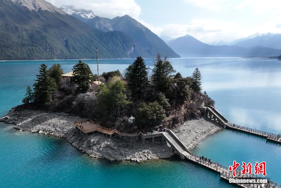 3月30日,航拍巴松措湖心島。巴松措又名錯高湖,位于西藏自治區(qū)林芝市工布江達(dá)縣,是西藏首個自然風(fēng)景類國家5A級旅游風(fēng)景區(qū)。從空中俯瞰巴松措,碧藍(lán)的湖水被雪山、森林環(huán)繞,宛如鑲嵌在群山間的“藍(lán)寶石”。(無人機(jī)照片)中新社記者 馬銘言 攝