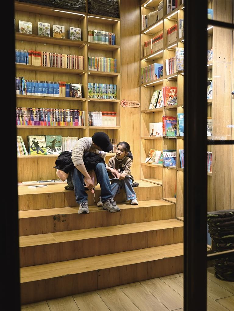 央喜書吧閱讀區(qū),讀者帶孩子一起看書。