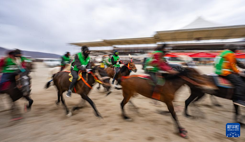 4月26日,騎手在進行賽馬比賽。新華社記者 晉美多吉 攝