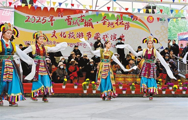 近日,“雪域古城·圣地拉薩”文化旅游節(jié)非遺主題活動(dòng)在拉薩宗角祿康公園內(nèi)開展,現(xiàn)場(chǎng)人潮涌動(dòng)。非遺藏戲演員身著華服,以高亢唱腔演繹《朗薩雯蚌》選段,觀眾圍坐沉浸于雪域藝術(shù)魅力。非遺展銷區(qū)陳列著木雕、牛皮制品等傳統(tǒng)手工藝品。活動(dòng)全面展現(xiàn)了非遺保護(hù)傳承與利用的新進(jìn)展和新成效。記者 唐斌 攝
