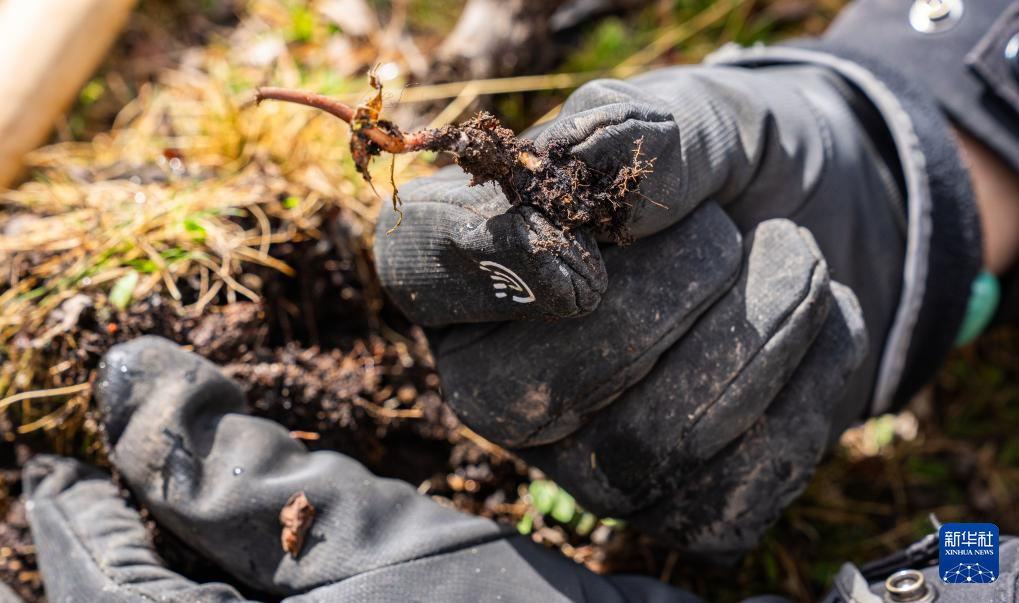 這是在那曲市索縣西昌鄉(xiāng)拍攝的剛采挖出的蟲(chóng)草(5月18日攝)。新華社記者 丁增尼達(dá) 攝 ??