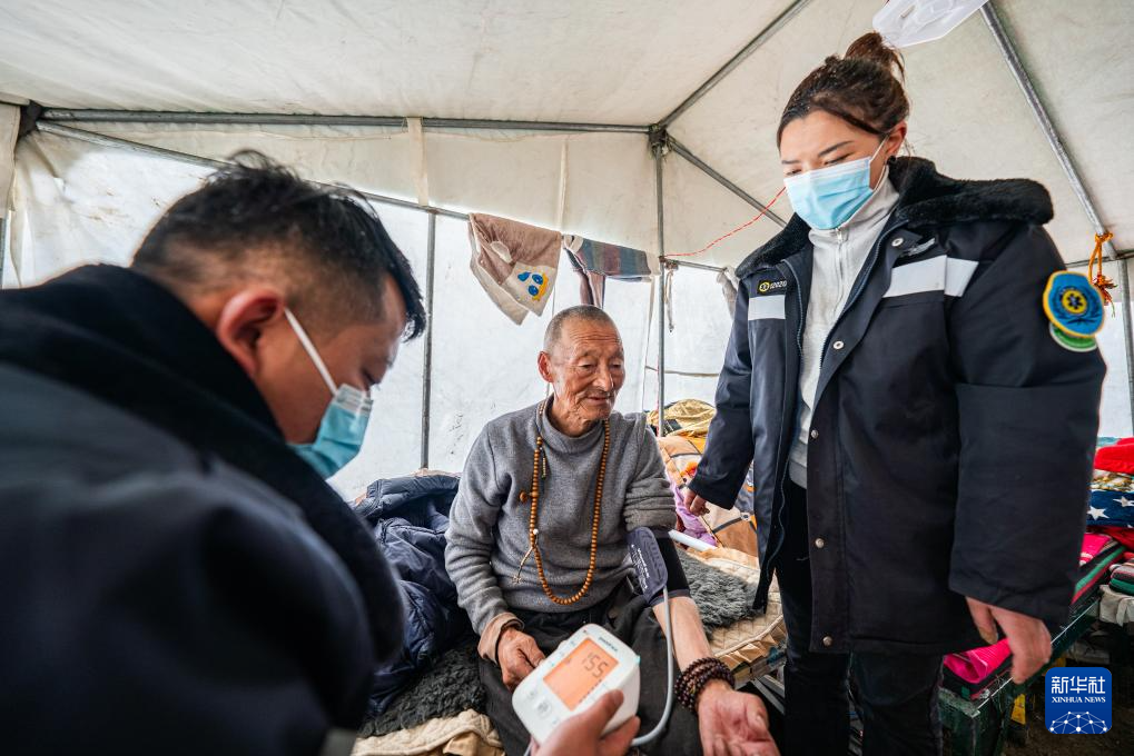 在那曲市索縣西昌鄉(xiāng),衛(wèi)生院醫(yī)務(wù)人員為蟲(chóng)草采集點(diǎn)的牧民測(cè)量血壓(5月18日攝)。新華社記者 丁增尼達(dá) 攝 ??