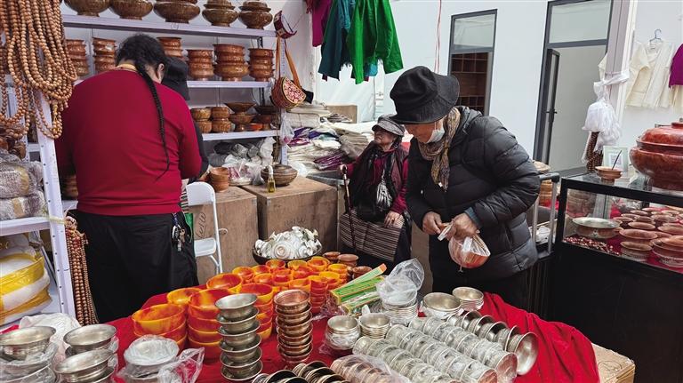 參展商們也在最后一天全力沖刺,來自不同地域、經營不同品類商品的商家在展會上均收獲頗豐。來自尼泊爾的新白瑪塔西綜合商店老板拉魯,此次展銷會帶來了木碗、玉碗、銅碗等二十多類特色產品。他笑著表示:“銷量挺不錯的,我們家的產品不僅品類豐富,價格也實惠。這已經是我第八次來拉薩參加展銷會了,每次都能感受到拉薩消費者的熱情,也收獲滿滿?!?/p>