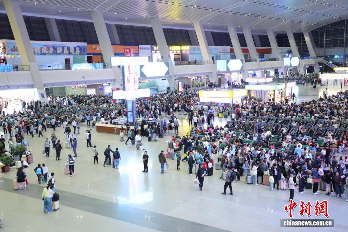 圖為旅客在西寧火車站候車大廳內(nèi)候車?! ≈軔傁钄z