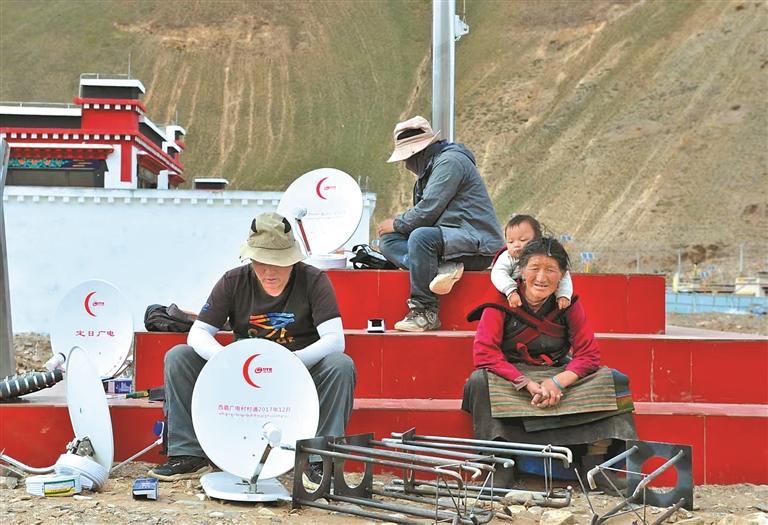 圖為在定日縣措果鄉(xiāng)野江村,工作人員為群眾安裝廣播電視直播衛(wèi)星“戶戶通”設備。記者 旦增嘎瓦 攝