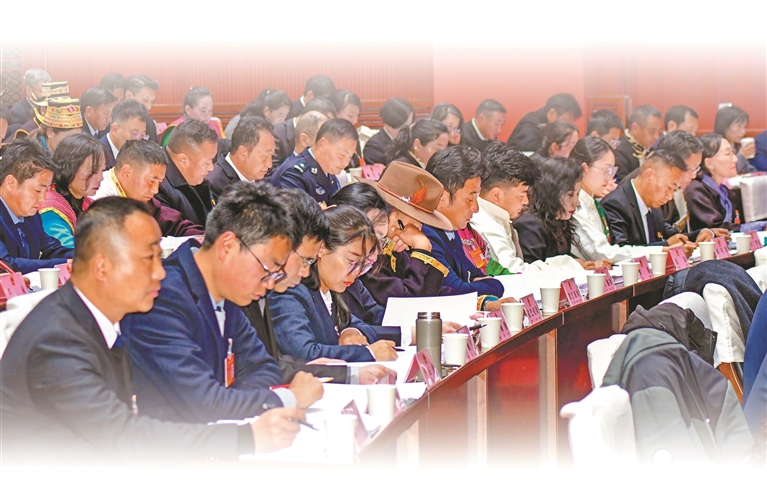 林芝市人大代表認(rèn)真聆聽政府工作報(bào)告。