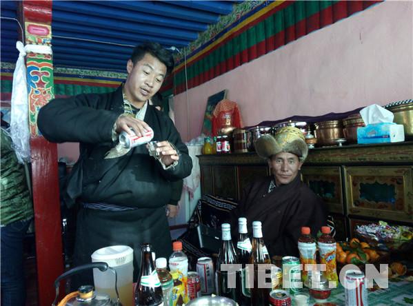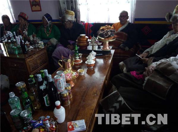 據(jù)了解,在藏歷十月三十白天,婦女們給孩子和自己洗發(fā),準(zhǔn)備過年的材料,如釀制青稞酒、制作油炸果子等。晚上10點(diǎn)左右,家中派出男性,舉行驅(qū)鬼儀式。大年初一的上午,全村的男人們騎上駿馬,到村落的山神處祭祀,更換經(jīng)幡,誦經(jīng)祈福。各家各戶回家后就在家中聚會(huì),一般是不出去的,個(gè)別時(shí)候,家中派出兩三個(gè)青年男女手持青稞酒和酒碗,端著切瑪盒,切瑪盒內(nèi)裝有青稞、糌粑、五彩的吉祥草,帶上青稞酒,到隔壁鄰居或親戚家拜年,見面后,互相祝福吉祥,敬獻(xiàn)青稞酒,各自抓起對(duì)方切瑪盒內(nèi)的青稞粒拋向空中,摔三下,祭拜天、地、神,祈禱新年吉祥如意。