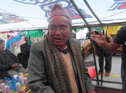 我遇見年逾古稀的尼泊爾商人孜曼的時候,他正悠閑地曬著太陽,頭戴一頂鴨舌帽,隱約露出黑白相間的頭發(fā),臉龐和雙手呈現(xiàn)出經(jīng)年高原陽光曬烤之后的古銅透紅色,鼻梁上常年架著一副舊式老花眼鏡,身著一件厚舊方格狀敞懷呢料西裝,左手中指、無名指各帶兩個碩大鑲嵌紅藍(lán)寶石的金戒指。
