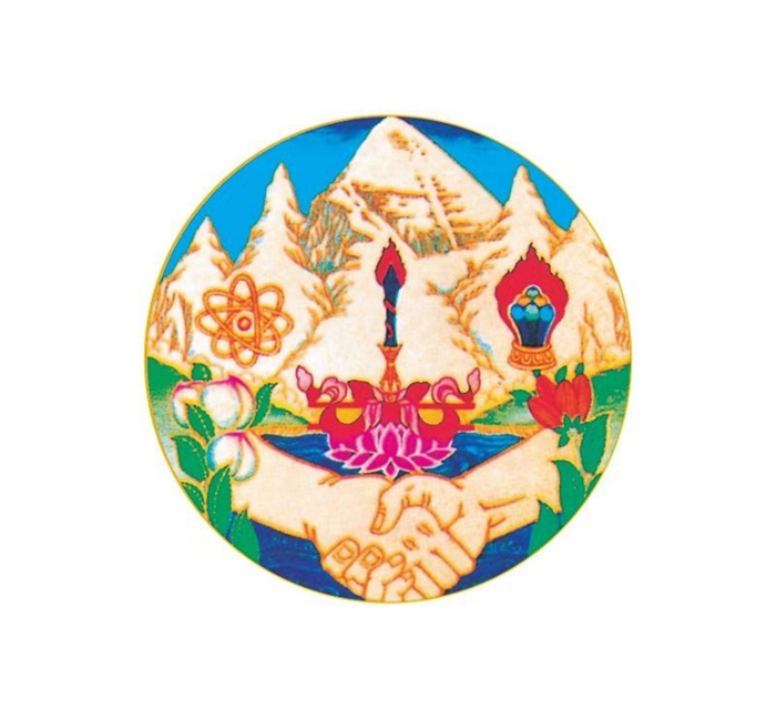 圖為十世班禪大師親自設(shè)計(jì)并請畫家洛松向秋付諸筆端的援助西藏發(fā)展基金會(huì)徽標(biāo)。