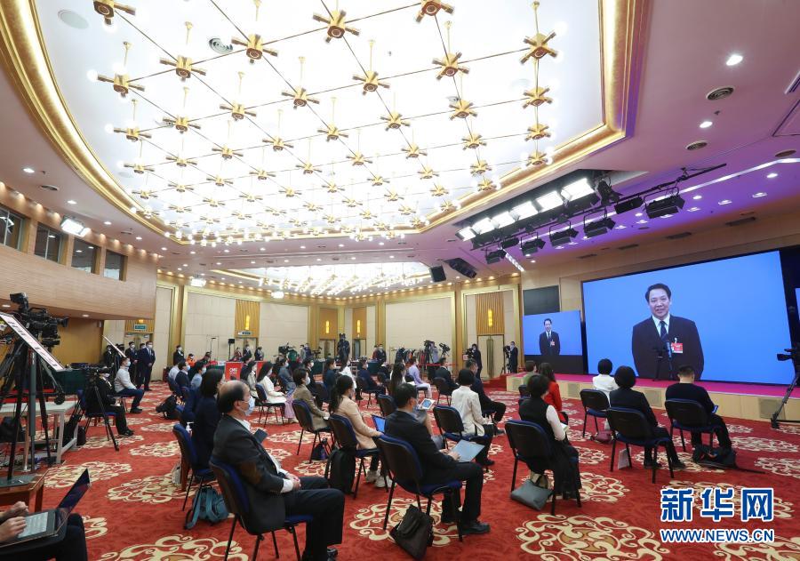 3月10日,全國政協(xié)十三屆四次會(huì)議第三場“委員通道”采訪活動(dòng)在北京人民大會(huì)堂新聞發(fā)布廳舉行。這是全國政協(xié)委員陳雨露通過網(wǎng)絡(luò)視頻方式接受媒體采訪。新華社記者 李賀 攝